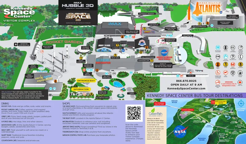 Include anche una visita al Centro Apollo/Saturn V con un vero razzo lunare Saturn V e vere rocce lunari insieme ad altri artefatti del programma Apollo.